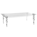 With its crystal clear look and Made from high-quality acrylic, the table combines durability with a chic design, ensuring it remains a standout feature in your décor and any coordination with various décor elements and color schemes makes it a versatile addition to countless events. \n \n Key Features \n \n Modern Chic Design \n Transparent \n Luxurious \n Light Weight \n
