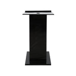 Add a touch of professionalism and sophistication to your next event with our elegant podium. Perfect for conferences, seminars, weddings, and public speaking engagements, this podium provides both functionality and style, ensuring that every presentation and speech is delivered with impact. \n \n Key Features \n \n Single Speaker \n Modern Sleek Look \n Squared Top \n Customizable \n