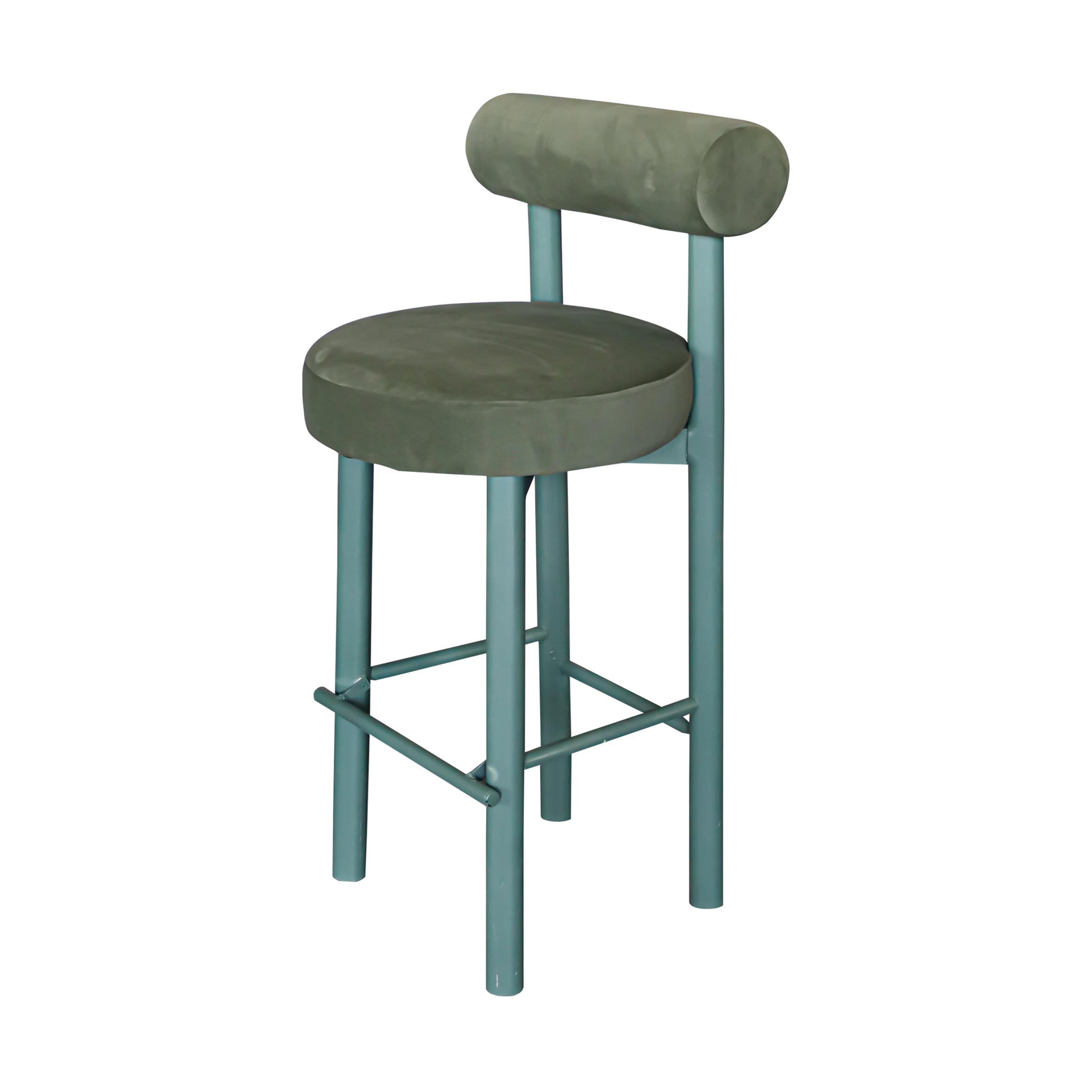 The Fat Bar Stool features a striking green upholstery that injects a burst of color into your space. The bold green shade is perfect for creating a lively atmosphere for your event.
