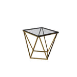 The Dragon Coffee Table features a distinctive diamond-shaped that adds a touch of geometric sophistication to your event. This eye-catching design creates a dynamic focal point and enhances the visual interest of your events décor. \n \n Key Features \n \n Geometric Design \n Diamond Shape \n Golden Frame \n Glass Top \n