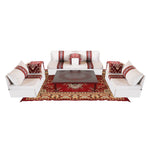 The Majlis Set is rooted in rich cultural traditions, known for its grand, plush design and intricate detailing. With its generously cushioned seats and ornate craftsmanship, this set exudes an air of luxury and refinement. The traditional design often features high-backed seats, elegant armrests, and detailed embroidery or carvings. \n \n Key Features \n \n 2 Seater Majlis Sofa \n Carpet \n Coffee table \n Single Seater Majlis Sofa \n